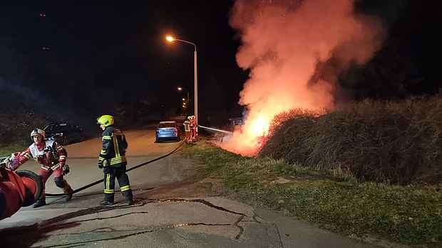 Die Feuerwehr wurde um 22:10 Uhr zu einem Heckenbrand in den Triftweg alarmiert. Bereits auf der Anfahrt zur Einsatzstelle war ein deutlicher Feuerschein wahrzunehmen. Eine erste Lageerkundung an der Einsatzstelle ergab den Brand einer Hecke und eines Holzzaunes auf einer Länge von ca. 10 Metern. Im unmittelbaren Bereich der Hecke befanden sich drei Lauben. Alle drei Lauben waren von einer möglichen Brandausbreitung betroffen. Erste Brandspuren waren an den Lauben zu erkennen. Die Brandbekämpfung ist sofort nach dem Eintreffen an der Einsatzstelle durch das erste Fahrzeug der Berufsfeuerwehr vorbereitet und in der Folge aufgenommen worden. Durch die schnelle Brandbekämpfung konnte eine weitere Ausbreitung auf die Lauben verhindert werden. Die Wasserversorgung ist über die Löschfahrzeuge sichergestellt worden. Nach der ersten Brandbekämpfung wurden die Lauben durch die Feuerwehren kontrolliert, ohne Feststellungen. Ein in unmittelbarer Nähe zur Einsatzstelle abgestellter PKW hatte nach dem Einsatz Ascheablagerungen auf dem Fahrzeug. Ein Schaden konnte hier nicht festgestellt werden. Der Brandschaden wird durch die Feuerwehr auf 10.000 Euro geschätzt. Die Einsatzstelle wurde an die Polizei übergeben. Im Einsatz waren die Berufsfeuerwehr und die Freiwilligen Feuerwehen Alten und Süd mit sechs Fahrzeugen und 29 Einsatzkräften.