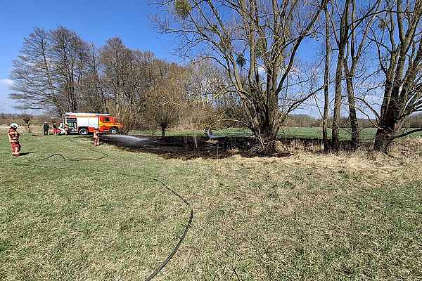 Die Berufsfeuerwehr wurde am 23.03.2026 um 12:30 Uhr zu einem Vegetationsbrand in die Möster Straße alarmiert. Am Einsatzort brannten ca. 500 m² Ödland. Weiterhin waren zwei Bäume unmittelbar vom Brand betroffen. Durch den Einsatz von zwei Strahlrohren konnte eine weitere Brandausbreitung verhindert werden. Im weiteren Verlauf wurde die Brandfläche gezielt abgelöscht. Der Brandschaden wird von der Feuerwehr auf 1.500 Euro geschätzt. Im Einsatz war die Berufsfeuerwehr mit zwei Fahrzeugen und neun Einsatzkräften.