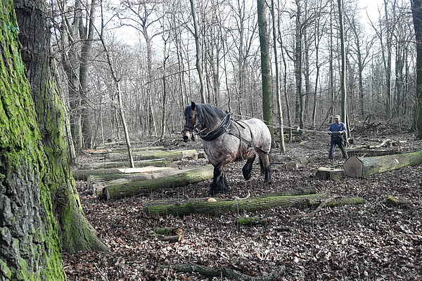 Wie ein solches Team aus Rückepferden und Mensch arbeitet, kann bei der öffentlichen Vorführung, zu der das Tiefbauamt und das Referat für Stadtgrün einladen, beobachtet werden.