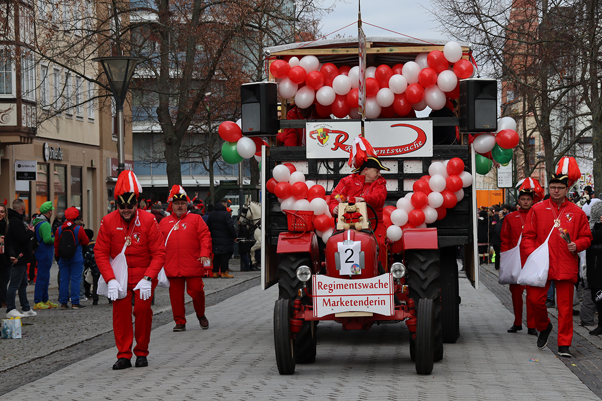 Zum 27. Mal zog unser Karnevalsumzug am 15. Februar 2026 durch die Innenstadt – mit über 1.000 Mitwirkenden, 84 liebevoll gestalteten Bildern, zahlreichen Fahrzeugen, Fußgruppen und vier stimmungsvollen Kapellen. Vom Start in der Friedhofstraße bis zur großen Zugparty auf dem Marktplatz war die Begeisterung überall spürbar. Bei strahlendem Sonnenschein säumten zahlreiche Besucherinnen und Besucher die rund drei Kilometer lange Strecke und feierten gemeinsam mit unseren engagierten Vereinen und Ehrenamtlichen dieses bunte Fest. Ein herzliches Dankeschön an alle, die mitgewirkt, organisiert und mitgefeiert haben. Ihr habt diesen Tag zu etwas ganz Besonderem gemacht!