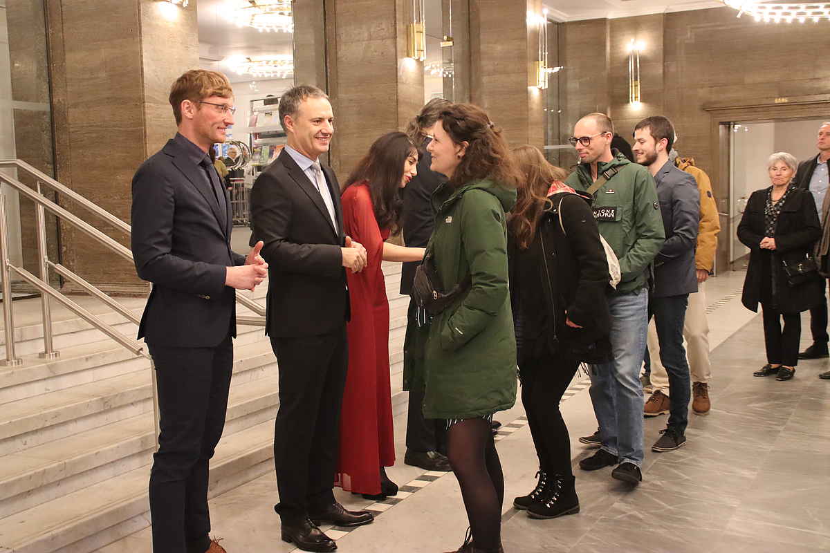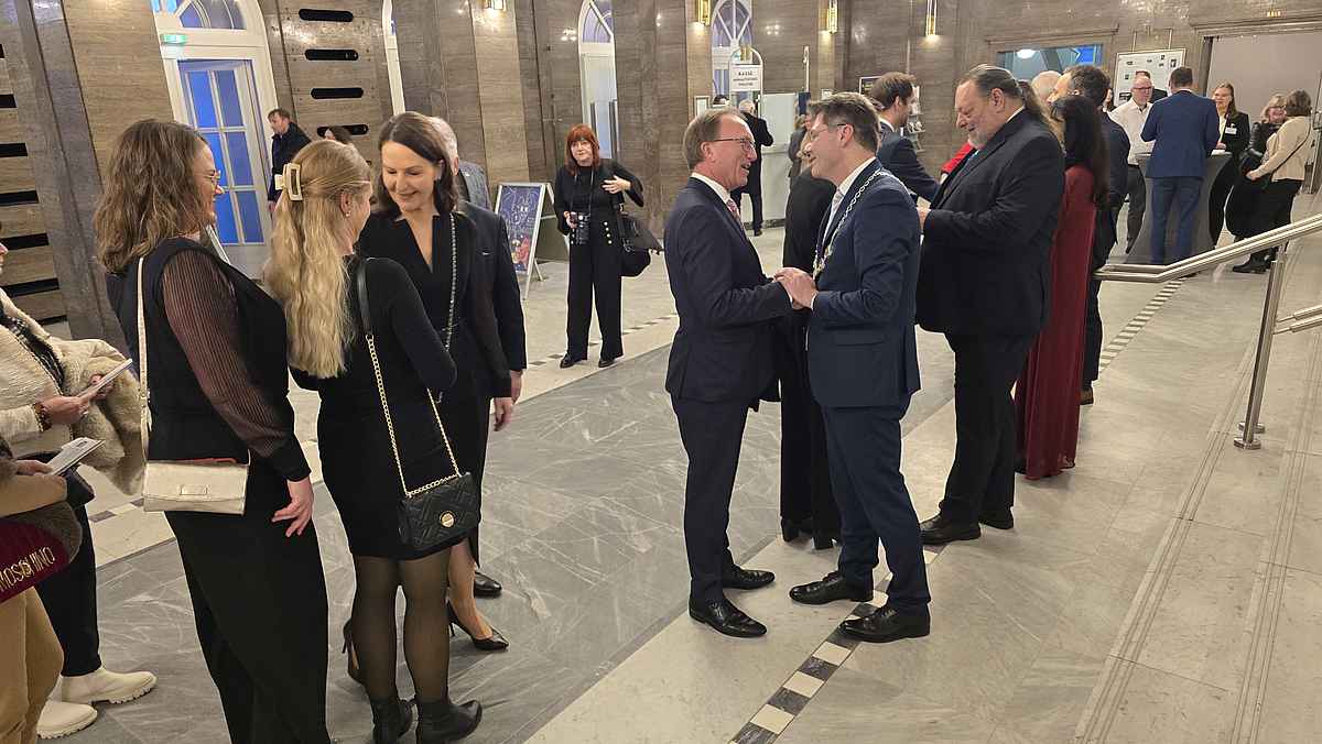 Schön, dass auch die Ministerin für Infrastruktur und Digitales sowie zweite stellvertretende Ministerpräsidentin des Landes Sachsen-Anhalt, Lydia Hüskens und Sepp Müller, stellvertretender Vorsitzender der CDU/CSU-Bundestagsfraktion ins Theater kamen und auch nette Grußworte mit im Gepäck hatten. Die Auszüge aus dem Neujahrskonzert, die den Empfang musikalisch umrahmten, waren sehr gut gewählt und kamen beim Publikum bestens an.