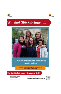 Der Name „Glücksbringer“ steht dabei sinnbildlich für das, was Engagement bewirkt: Engagierte Menschen schenken anderen Glücksmomente und erleben durch ihren Einsatz oft selbst ein Gefühl von Erfüllung und Freude.Wir möchten Personen und Initiativen vorstellen, die sich in unserer Stadt engagieren oder dieses Engagement aktiv unterstützen