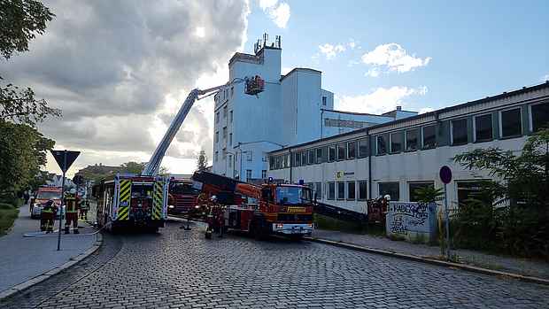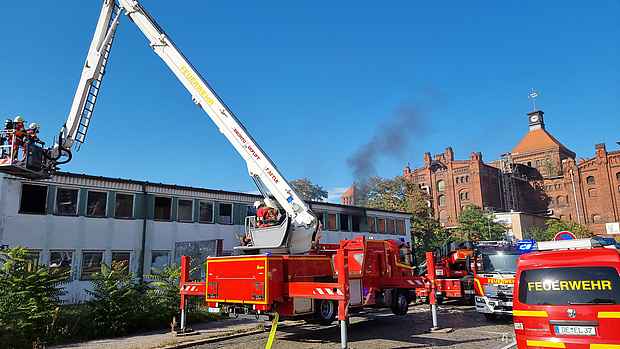 Um 17:02 Uhr wurde in der Rettungsleitstelle ein Brand in der ehemaligen Papierfabrik in der Junkersstraße gemeldet. An der Einsatzstelle bestätigte sich die Meldung. In einem zweigeschossigen Gebäude von 25 mal 10 Metern war die komplette obere Etage verqualmt. Aus mehreren offenen Fenstern drang schwarzer Qualm. Auf beiden Stirnseiten befanden sich Eingangstüren, wobei die Tür auf der Ostseite offenstand. Die Tür auf der Westseite wurde durch den Angriffstrupp der Berufsfeuerwehr gewaltsam geöffnet. Von beiden Seiten wurden Trupps unter Atemschutz zur Brandbekämpfung und zur Absuche des Objektes vorgeschickt. Auf Grund der Größe des Objekts standen zwei Sicherheitstrupps bereit. Zusätzlich kam zur Unterstützung auf beiden Seiten eine Überdruckbelüftung zum Einsatz. Die Wasserversorgung ist über zwei Unterflurhydranten sichergestellt worden. Zwei Hubrettungsfahrzeuge wurden in Bereitschaft versetzt, um bei Bedarf die Brandbekämpfung zu unterstützen. Die Brandstelle befand sich auf der Westseite. Es standen Unrat und ein Teil der Gebäudeeinrichtung in Flammen. Die gesamte obere Etage war rußgeschwärzt. Nach Abschluss der Brandbekämpfung wurden die beiden Eingänge durch die Feuerwehr verschlossen. Personen wurden nicht verletzt. Der Brandschaden wird durch die Feuerwehr auf 100.000 Euro geschätzt. Im Einsatz waren die Berufsfeuerwehr und die Freiwilligen Feuerwehren Süd, Mosigkau, Kühnau, Kochstedt und Roßlau mit 9 Fahrzeugen und 45 Einsatzkräften. Zur Absicherung stand zusätzlich ein Rettungswagen in Bereitschaft.