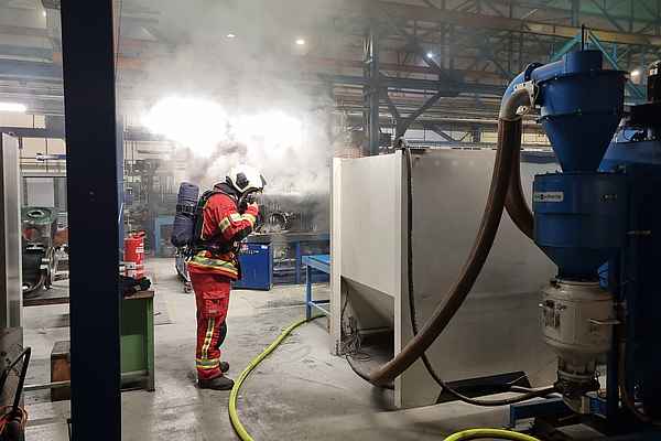 Die Berufsfeuerwehr Dessau-Roßlau wurde am Montag, den 08.09.2025 um 0:15 Uhr mit dem Einsatzstichwort „Maschinenbrand“ in die Peterholzstraße in der Ortslage Dessau alarmiert. Beim Eintreffen der Berufsfeuerwehr brannte eine Absaugmaschine in einer Werkhalle des DB-Werkes. Das Betriebspersonal war bereits mit Erstlöschmaßnahmen mittels Pulverlöschern im Einsatz. Durch die Kräfte der Feuerwehr wurde die Werkhalle evakuiert, der Brand mit einem C-Rohr abgelöscht und die Maschine herunter gekühlt. Zeitgleich wurde die stark verrauchte Werkhalle gelüftet. Es entstand ein Sachschaden in Höhe von 10.000 Euro. Im Einsatz waren die Berufsfeuerwehr Dessau-Roßlau mit Unterstützung der Freiwilligen Wehr Süd mit 6 Fahrzeugen und 17 Kameraden sowie eine Streifenwagenbesatzung der Polizei vor Ort.