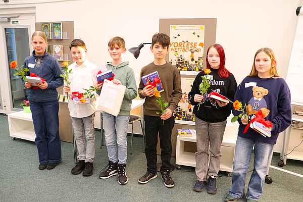 Im zweiten Teil wird es dann schon etwas schwieriger. Da müssen sie an einen ihnen unbekannten Text ran. In diesem Stadtausscheid war es der Buchtitel „Rocky Winterfeld – Ziemlich neben der Spur“ von Marie Hüttner. Von der Jury, in der auch eine Teilnehmerin aus dem Stadtentscheid des vergangenen Jahres dabei war, wurden Lesetechnik, Interpretation und beim selbst gewählten Text auch die Auswahl der Textstelle bewertet. Da gab es in diesem Jahr wieder so einige Kopf-an-Kopf-Rennen.